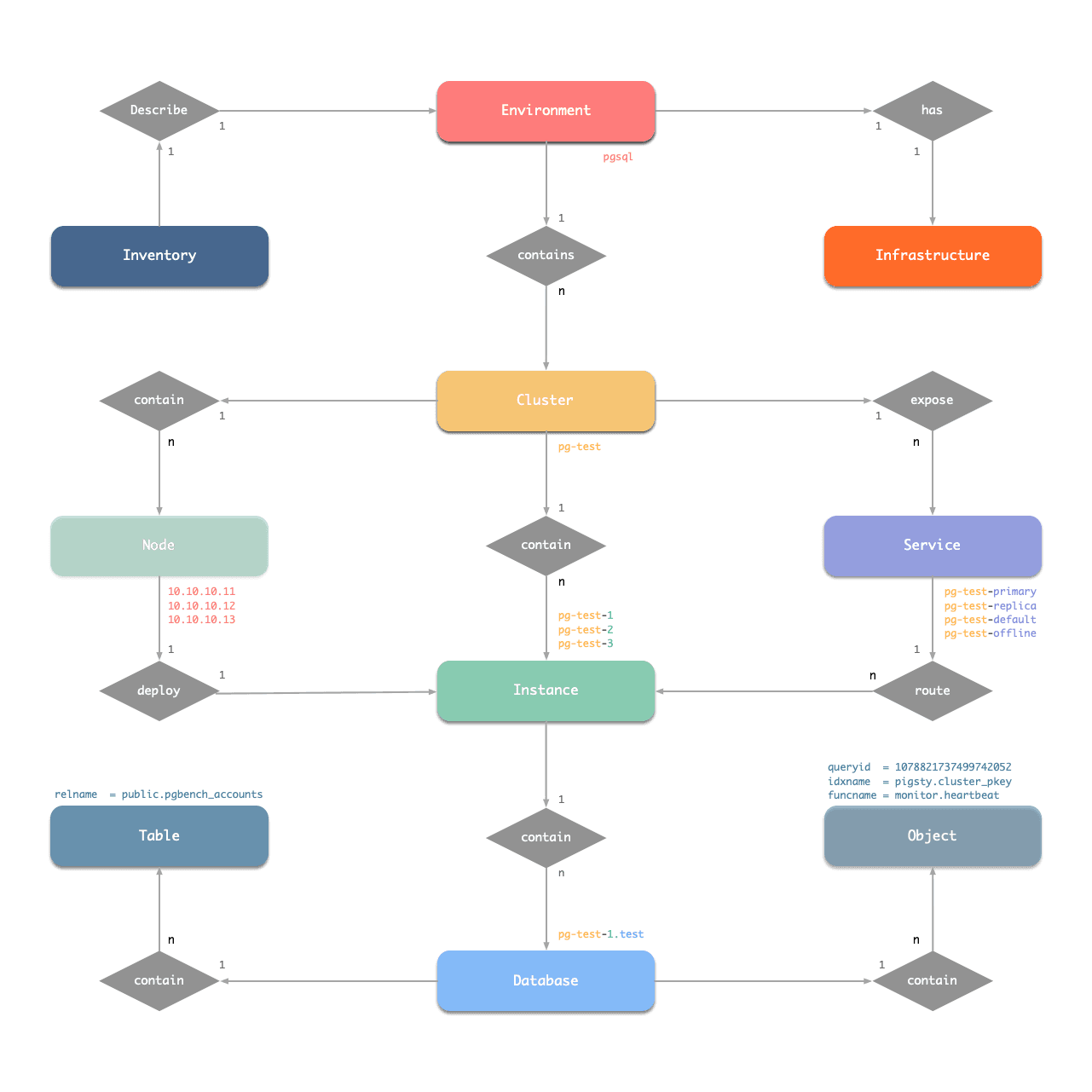 It defines a HA PostgreSQL cluster looks like the above, and here are related entities in this cluster: