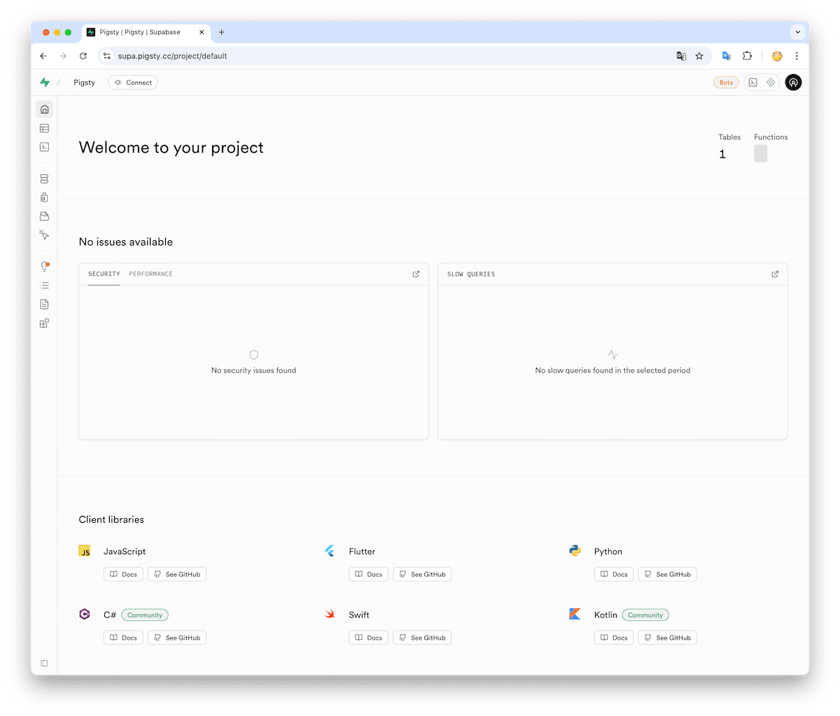 sed -ie 's/supa.pigsty.cc/supa.pigsty/g' ~/pigsty/pigsty.ymlIf you haven't configured it beforehand, reload Nginx and Supabase configurations: